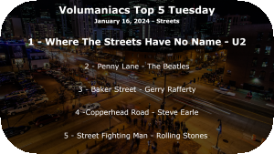Streets! Top5 Date January 16, 2024 Top5ResultsImage Read more about Streets!Log in or register to post comments
