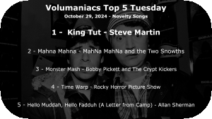 Novelty Songs Top5 Date October 29, 2024 Top5ResultsImage Read more about Novelty SongsLog in or register to post comments