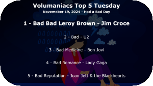 Had a Bad Day Top5 Date November 19, 2024 Top5ResultsImage Read more about Had a Bad DayLog in or register to post comments
