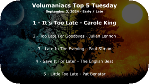 Early - Late Top5 Date September 3, 2024 Top5ResultsImage Read more about Early - LateLog in or register to post comments